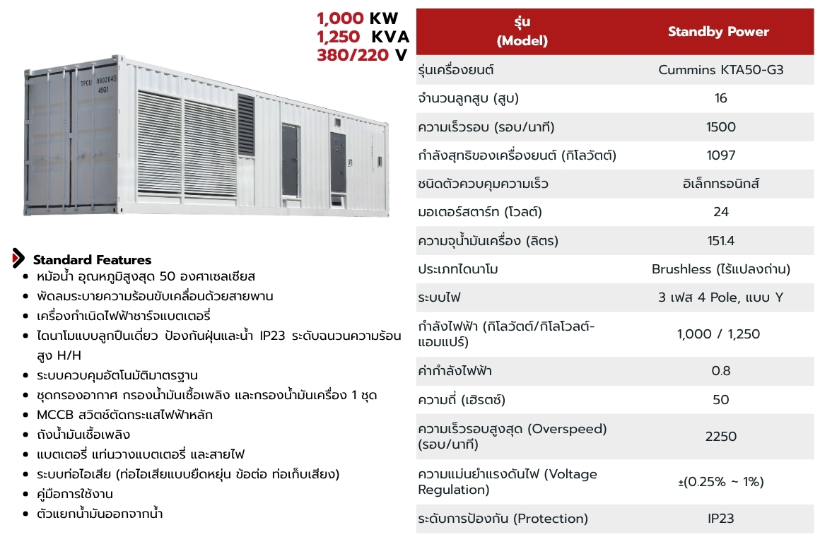 ถังน้ำมันเชื้อเพลิงขนาดใหญ่ : รองรับการใช้งานต่อเนื่องได้นาน 8-12 ชั่วโมง